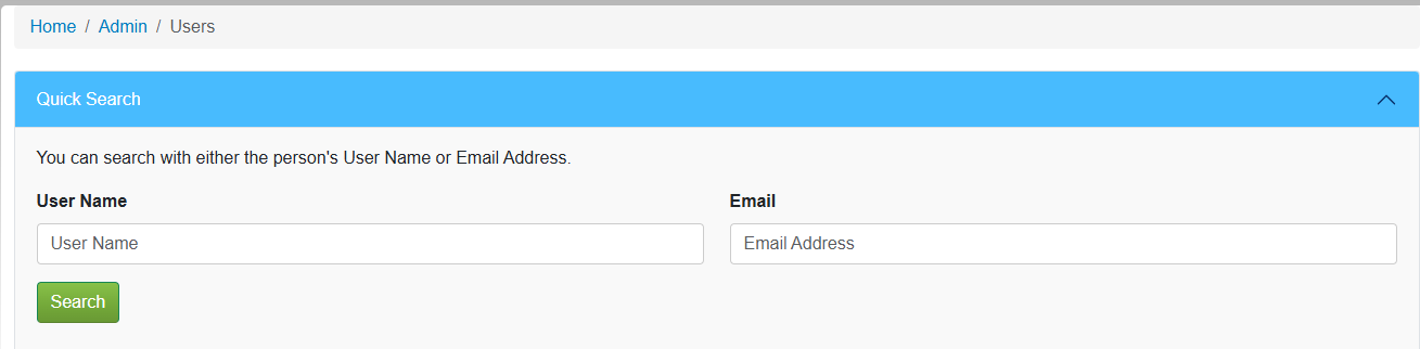 - Member ID: Find the account by the user's associated member ID number (only member records with associated member ID identities will be returned).