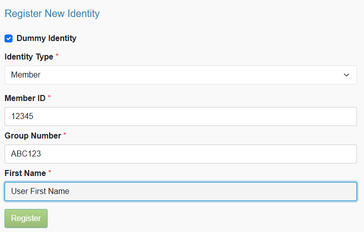 - Dummy Identity: This identity will be used for testing purposes or provider accounts and does not require a match to myHealth member data.