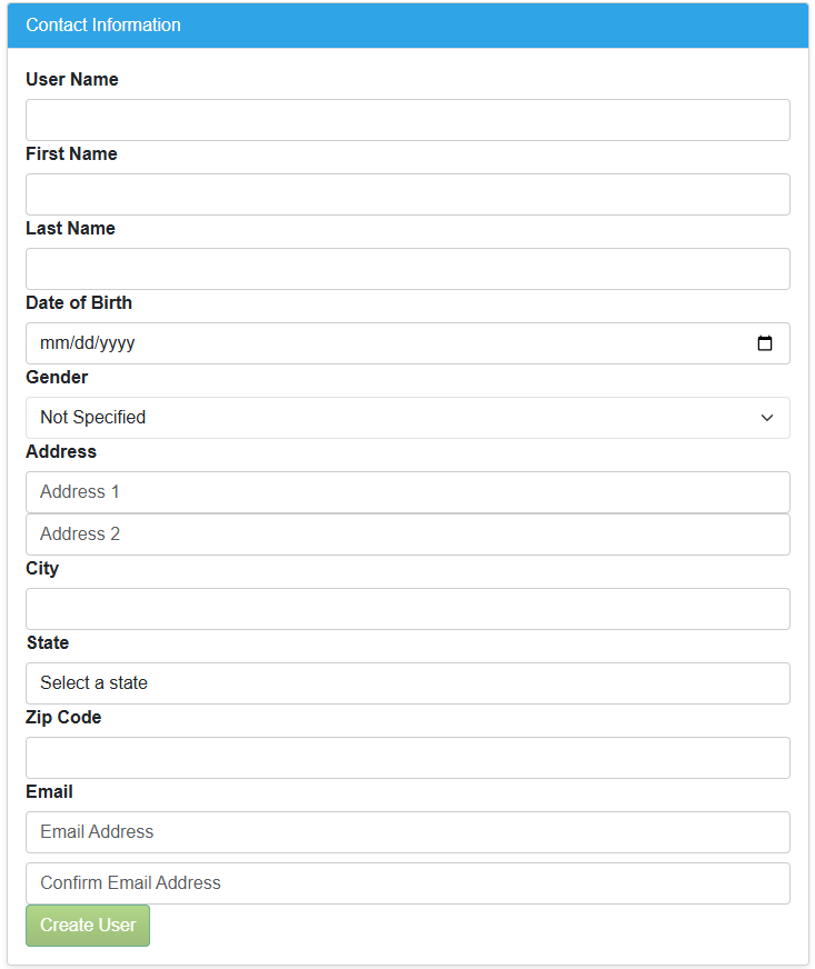- Date of Birth: Enter the user's date of birth or use the date picker to select one.