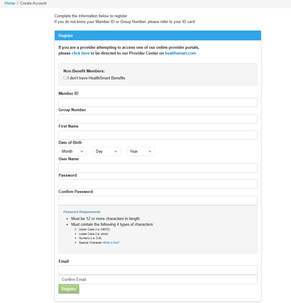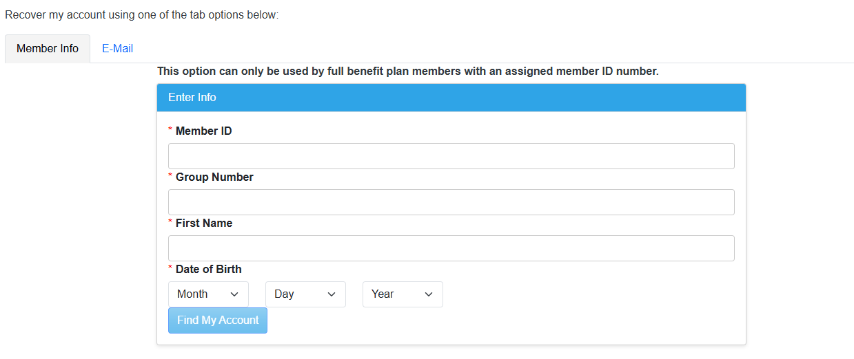 DEPENDENTS - If you are a dependent registering for an account, please use the member's ID and group number information with your own name and date of birth.