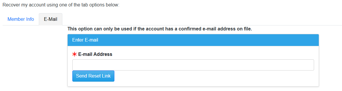- Enter the email address that is currently registered on the account and click the Send Reset Link button.