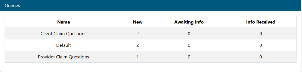 A list of queues will display containing transactions to be worked. Queue access is granted by your supervisor. See the Queues section of this documentation for more information.
