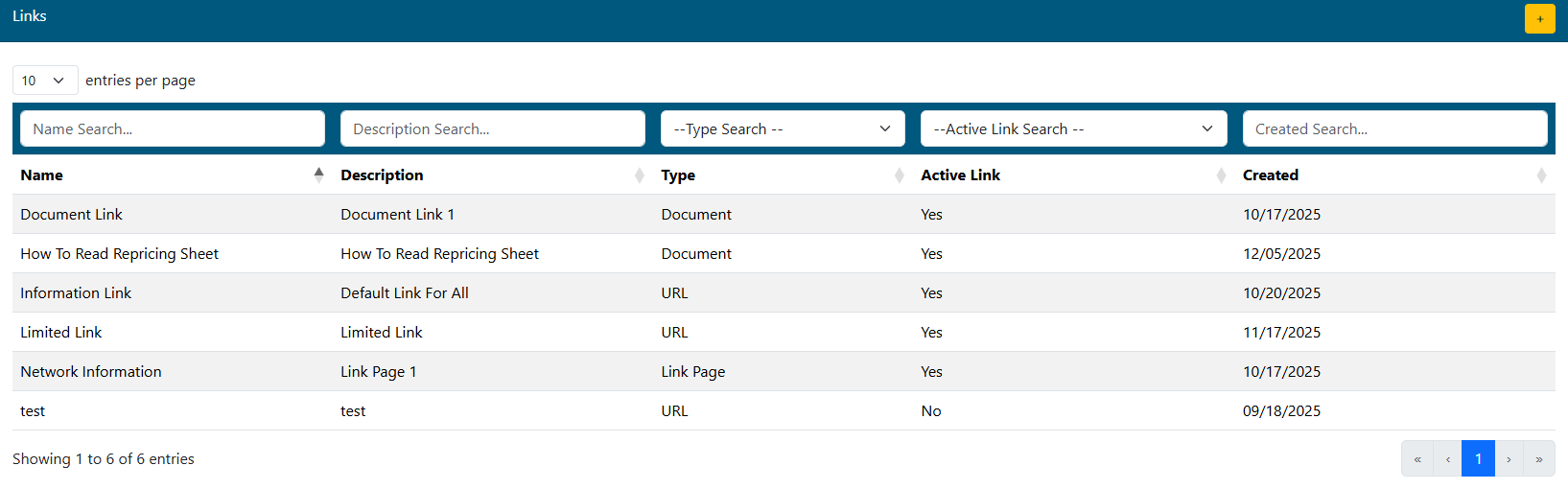 - Use the filter boxes at the top of each column to narrow down the list of existing links.