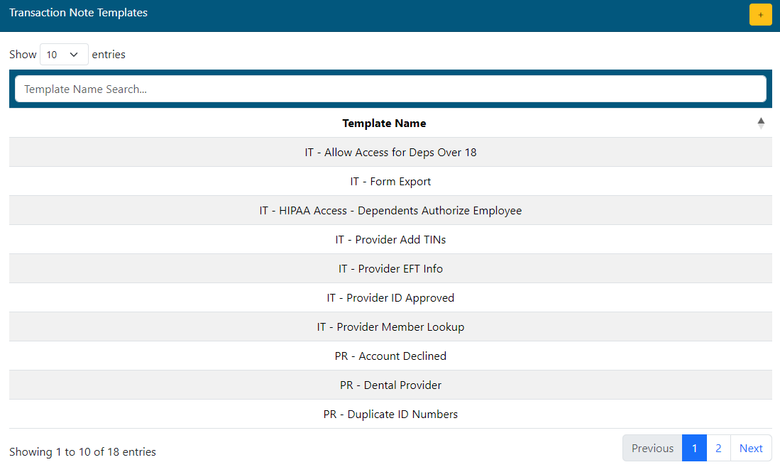 Add and edit note templates to be used on transactions as they are worked through the system. Note templates should be setup and identified by department for easier selection from the list. Use note templates to prepare pre-defined answers to questions in the system. These are used for customer dialogue or internal notes.