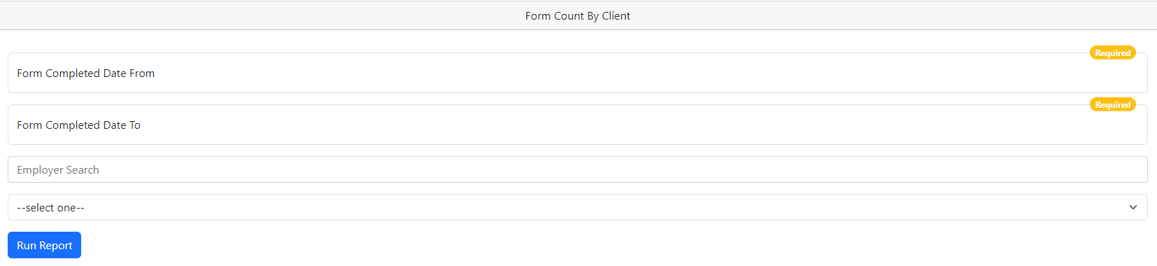 Use this report to show all forms submitted from all clients in a date range or for specific clients in a date range.  The report will show forms submitted by members, clients or providers as long as the form submitted was in reference to a member that is tied to a an employer group.