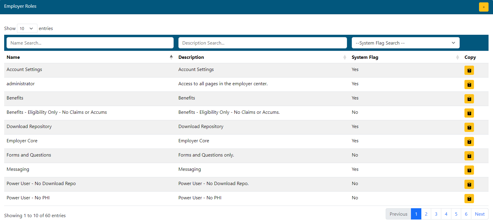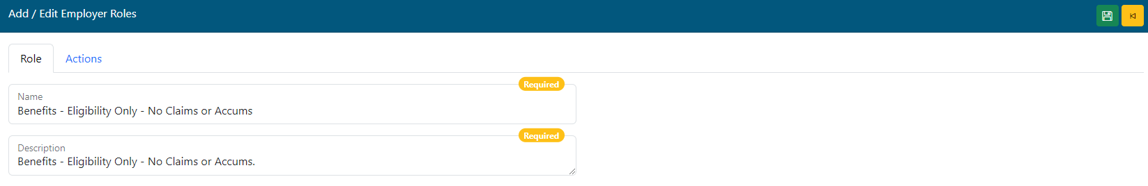 Employer roles are used to define what areas of the EMPLOYER CENTER are accessible by an Employer user.  Setup general roles that can be assigned to Employer users by TPA staff, and primary Employer users who are building sub-users on their own.