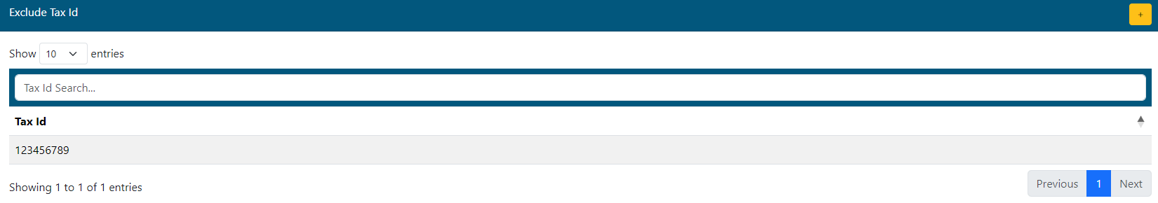 - Edit existing tax ID: Search for existing Tax ID using the filter boxes at the top of each column. Click on the Tax ID record you wish to edit.