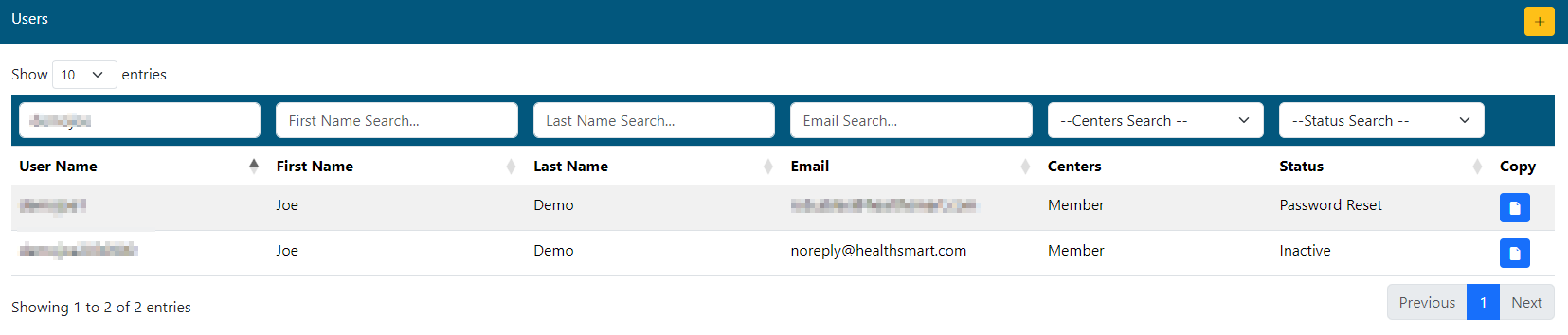 - Narrow user list down using any of the filter fields above each column. Click the desired user row to select that user for edit.