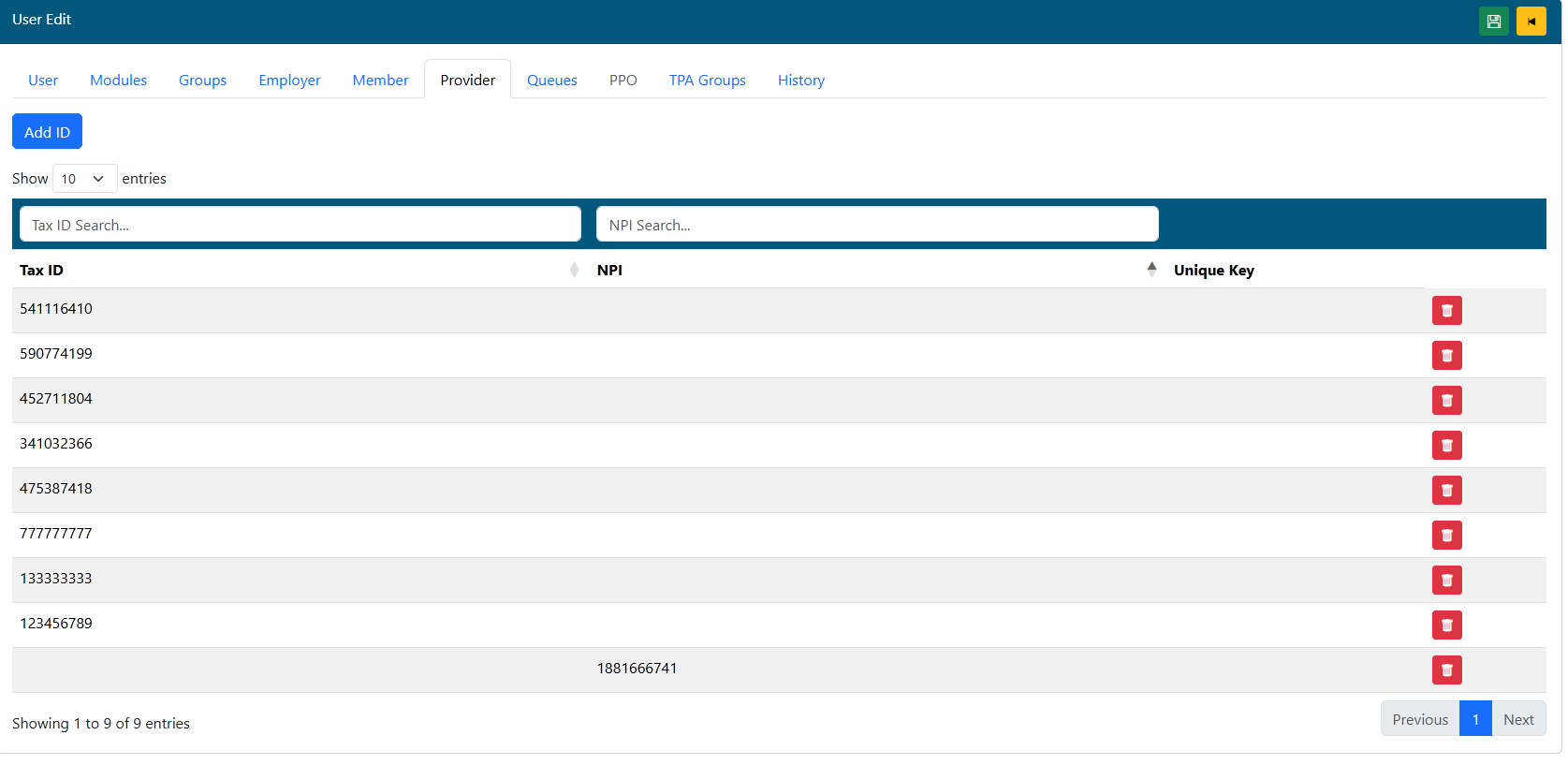 - Allow access for Provider Center Users. Add by Tax ID or NPI.