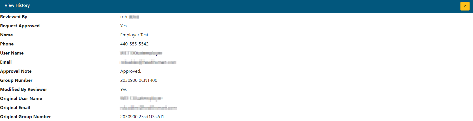 This page will display all previously approved or denied user requests from the Employer, Provider, and PPO Centers.