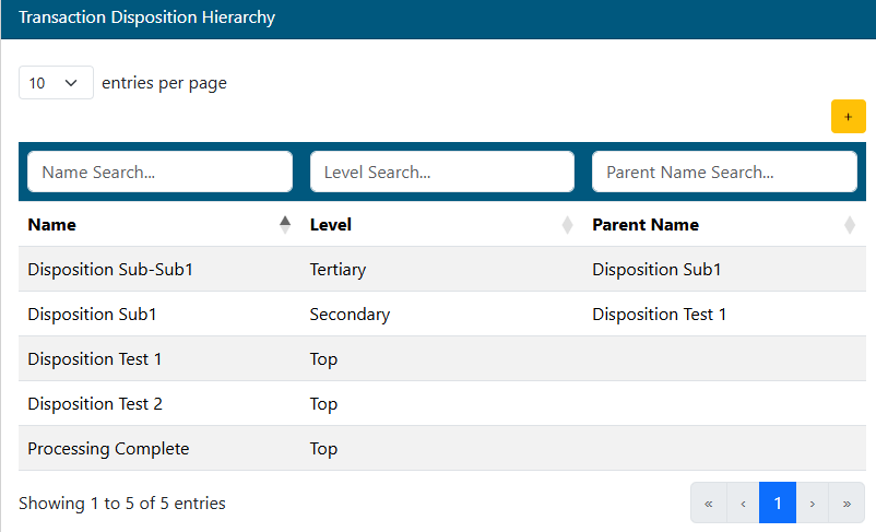 - Search for an existing disposition to edit using the filters above each column.